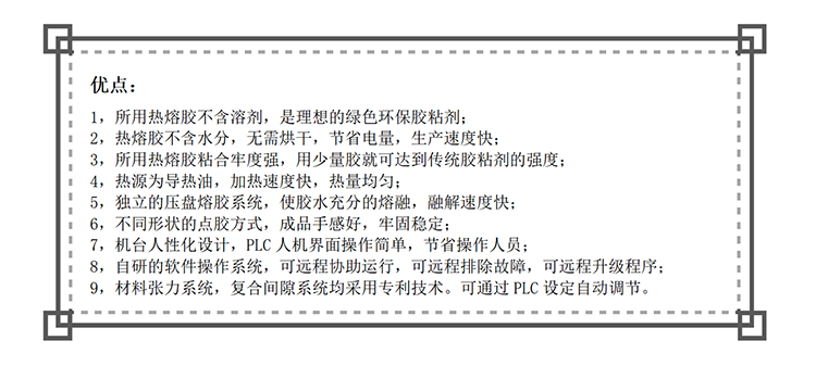 什么是環保型熱熔膠機?環保型熱熔膠機是行業內熱熔機生產廠商,響應環保號召,而開發出的一款產品。它特有的涂層使膠粉不變黃,先進的智能數顯控制讓您在設定的恒溫條件下自動實現電源的切斷、閉合.﹙輥輪可任...