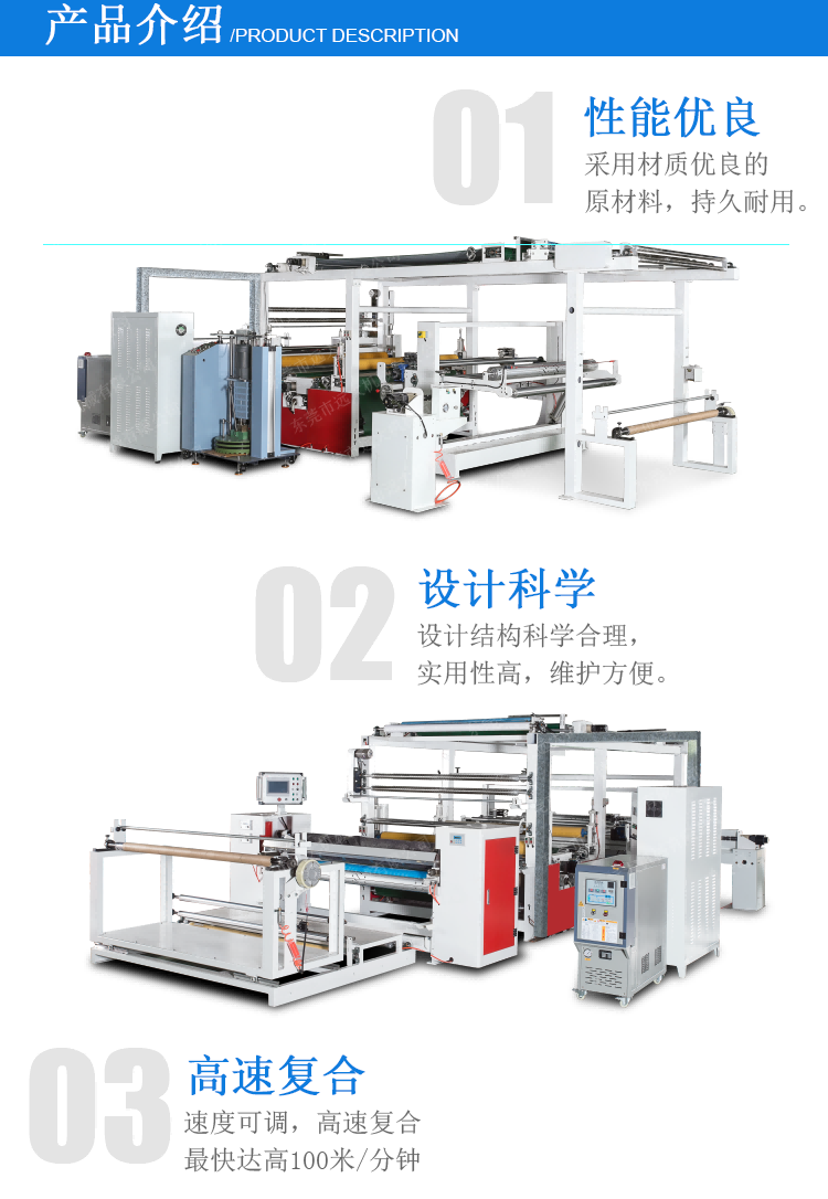 什么是復合機:復合機也叫粘合機、粘合機,是將兩層或兩層以上相同或不同的材料(如布、紙、人造革、各種塑料、橡膠片材卷材等把它們加熱到溶化、半溶化狀態或者用一種特制粘合劑復合為一體的機械設備。我司主要生產...